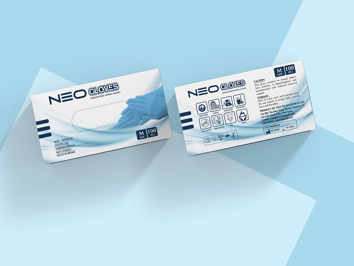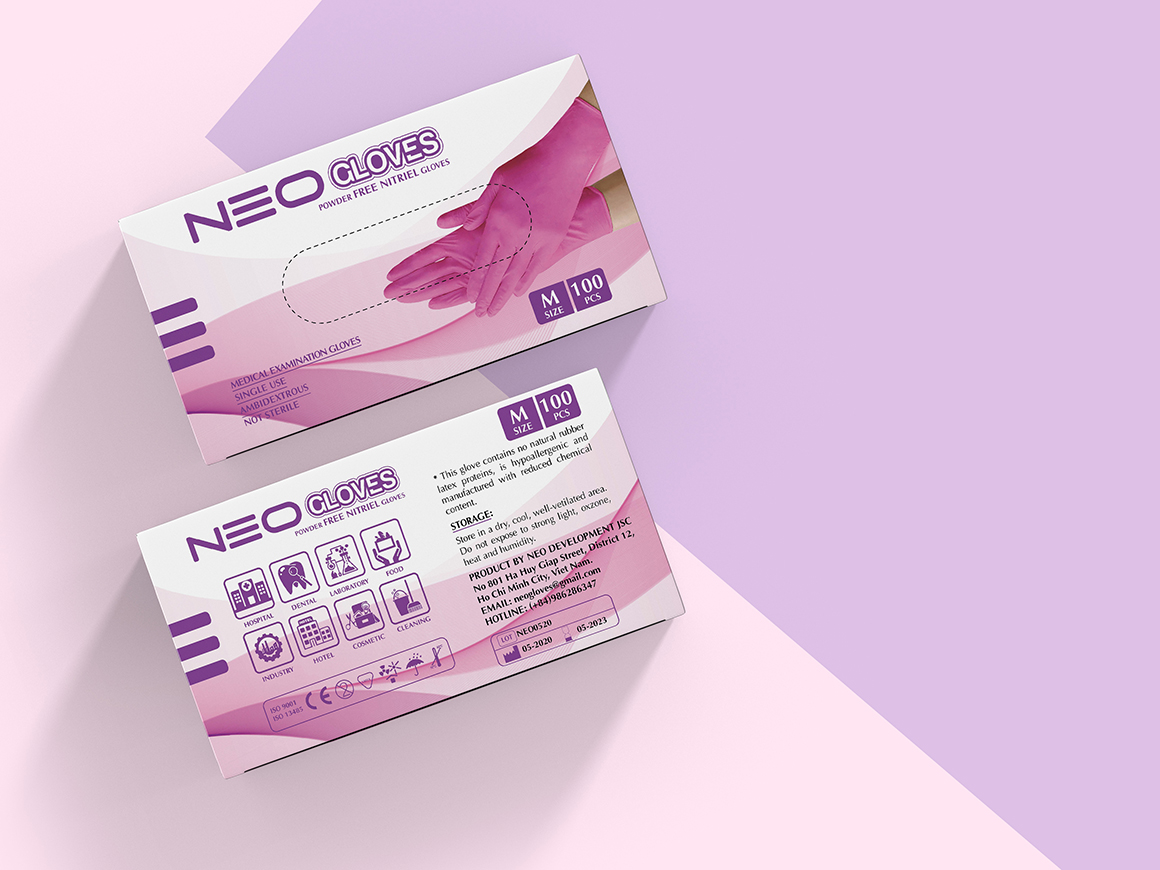 Loạt dự án thiết kế bao bì y tế của thị trường, bao bì găng tay được định hướng là tối giản, hiện đại và trực quan. Hình ảnh bàn tay đeo găng tay mô phỏng các hoạt động rửa tay giúp người dùng dễ dàng thừa nhận cách sử dụng sản phẩm. Ngoài ra, thông tin chi tiết về các thành phần tạo nên sản phẩm, số lượng, kích thước và thương hiệu mẹ giúp người tiêu dùng tin tưởng và đưa ra quyết định mua hàng dễ dàng hơn.