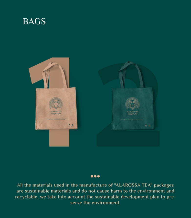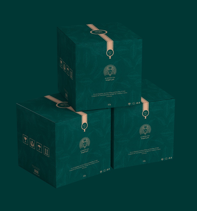 Thương hiệu trà Alarossa, một thương hiệu cả Arap. Được thiết kế với màu sắc độc đáo, đảm bảo định hướng bản sắc văn hóa của các nước vùng Trung Đông, vật liệu thân thiện với môi trường với một màu xanh mát, dịu dàng, tươi mát.