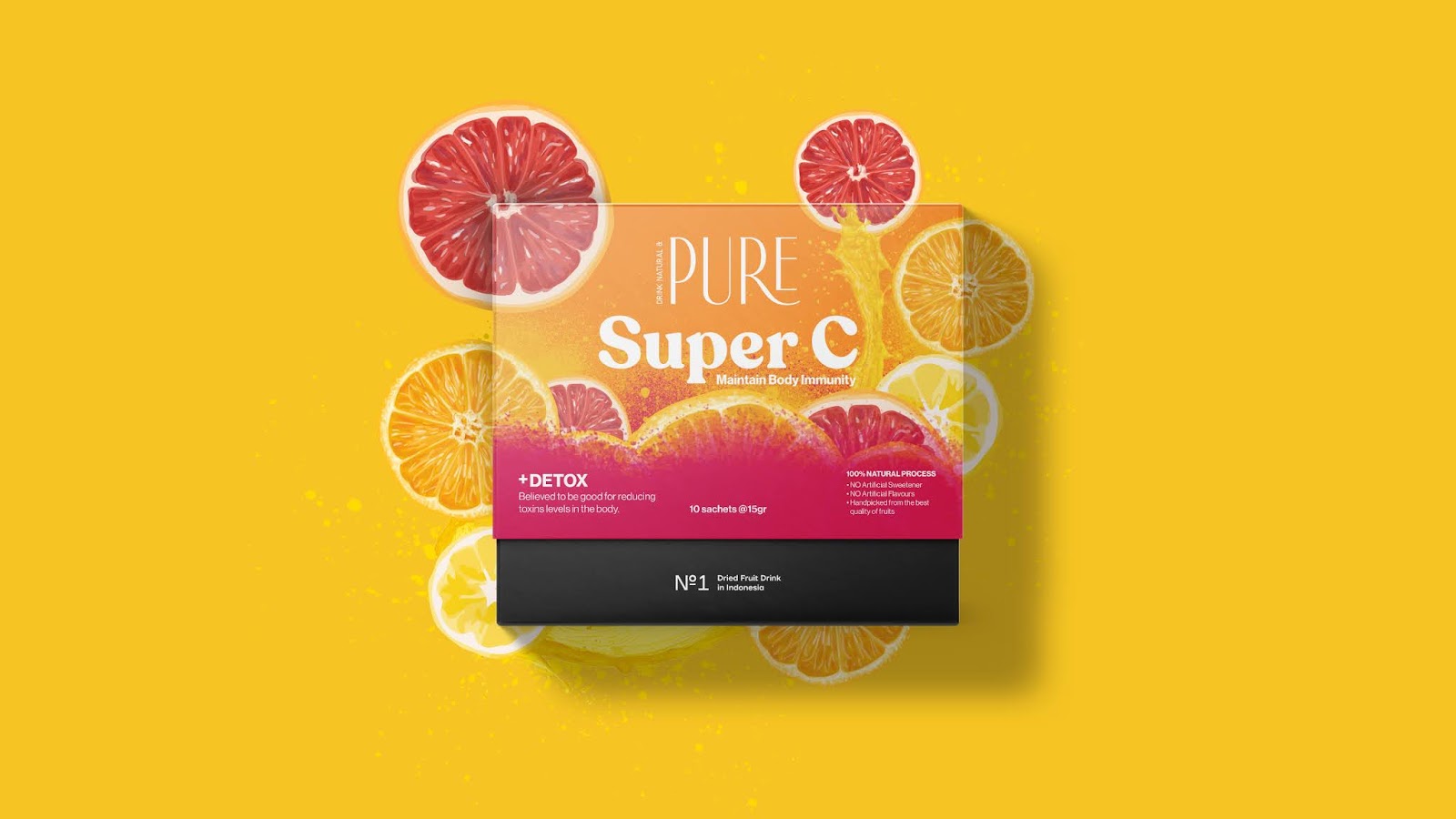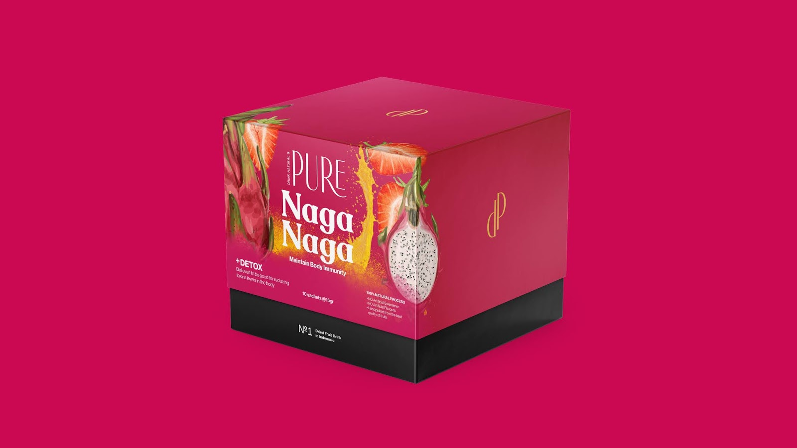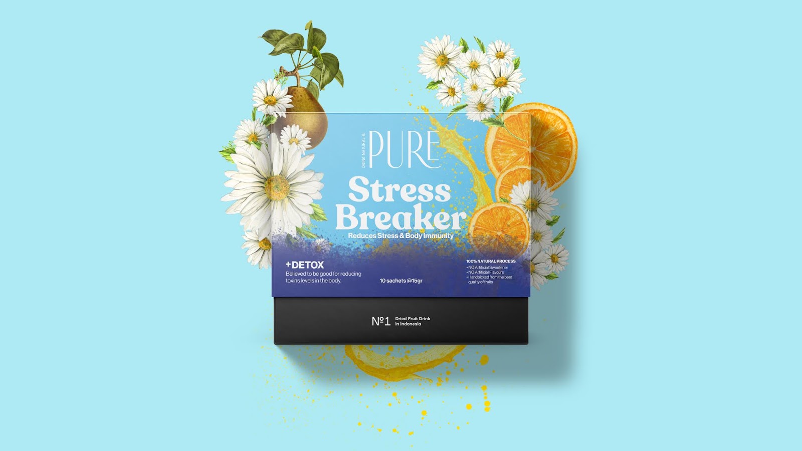 Khách hàng có thể sử dụng các gói phục vụ duy nhất này để tự làm nước / đồ uống truyền bằng cách bù nước trái cây trong nước hoặc đồ uống khác. Sản phẩm này được tạo ra để thúc đẩy cuộc sống lành mạnh và sức khỏe tốt hơn. Mức tiêu thụ nước được đề nghị trung bình dao động từ 2-3 L mỗi ngày, nhưng điều này có vẻ khó khăn đối với nhiều người tiêu dùng đã quen với việc uống đồ uống ngọt. Challenge Đồ uống được làm từ trái cây sấy khô không phổ biến ở Indonesia, do đó một hình ảnh bắt mắt của khách hàng là cần thiết và truyền đạt các tính năng và lợi ích của đồ uống trái cây sấy khô cho họ.